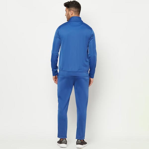 Blue and white colourblocked stretchable tracksuit